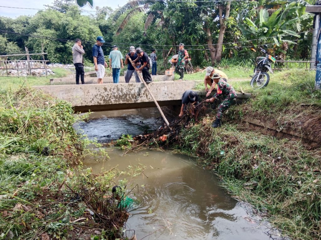 Koramil Jajaran Kodim 0620/Kab. Cirebon Gelar Karya Bakti Gulbencal, Bersihkan Aliran Irigasi Bersama Warga